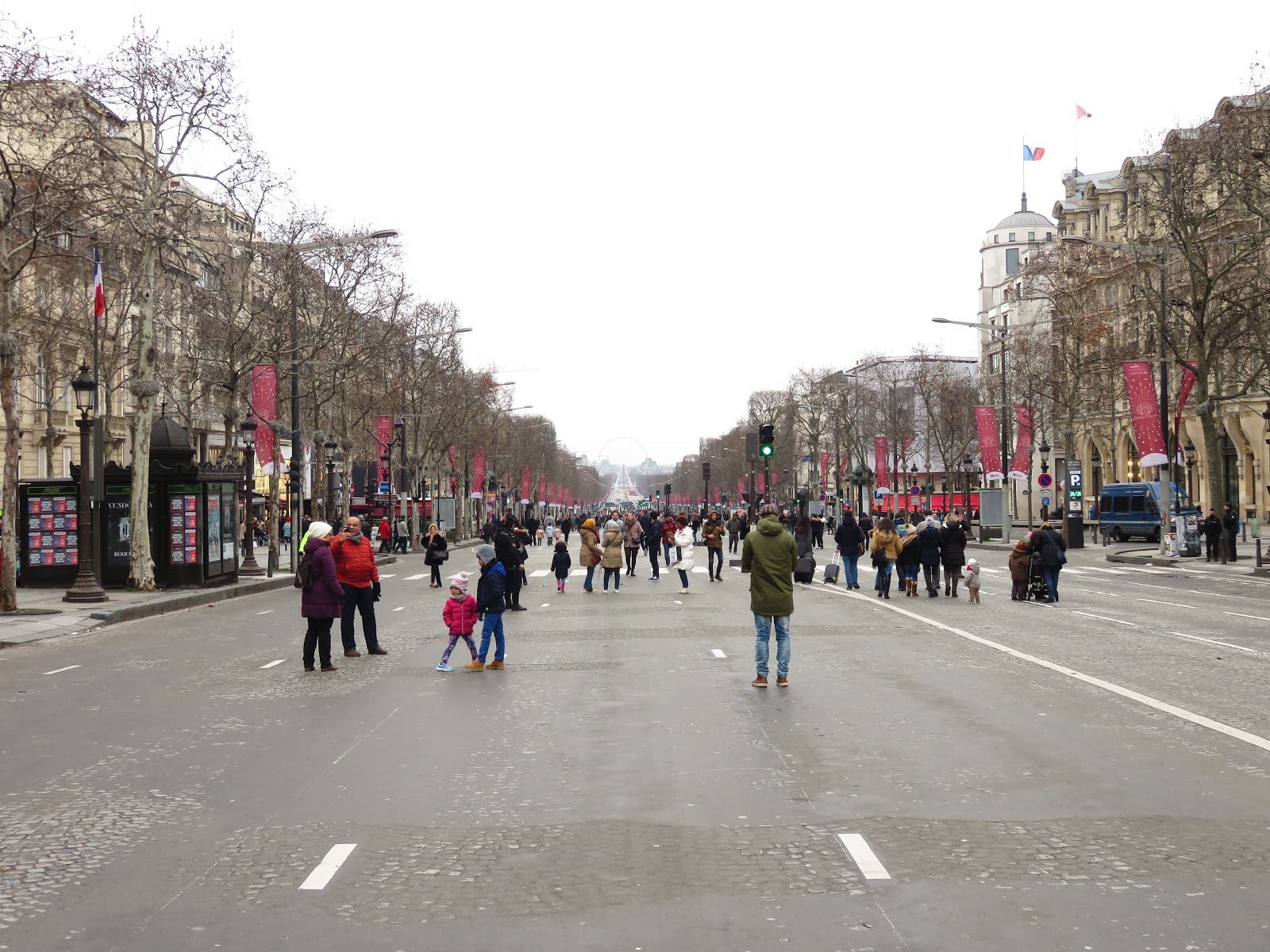 We then walked down along the avenue de la Grande Armee to the Etoile. On the first Sunday of each month the Champs Elysees is closed to vehicular traffic from the Etoile to Clemenceau. We went through a quick police check and were then free to roam the famous road. The security check was fast - we were only waiting for a couple of minutes, but the police were well organized and could give the Ottawa parliament hill people a few lessons. The stroll down and back was very relaxed. There were a couple of performers who drew good crowds.